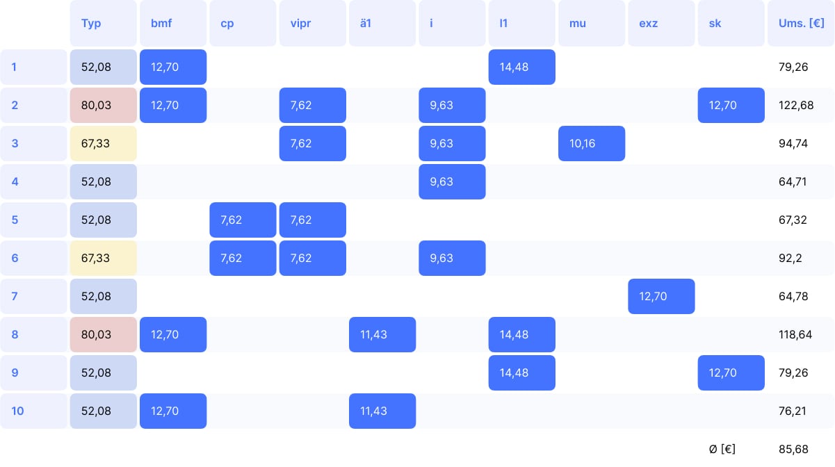 Durchschnittlicher Umsatz BEMA: 85,68 €