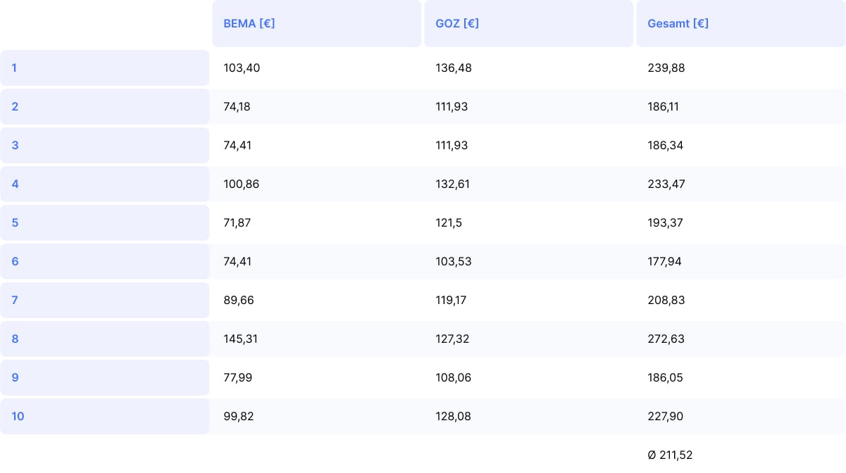 Durchschnittlicher Umsatz GOZ: 120,06 €